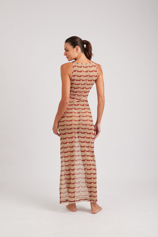 Vestido Longo Regata Olha o Latte Vermelho/Branco