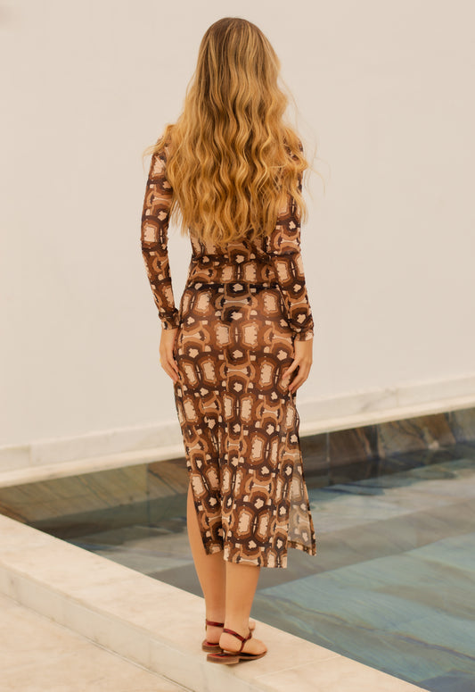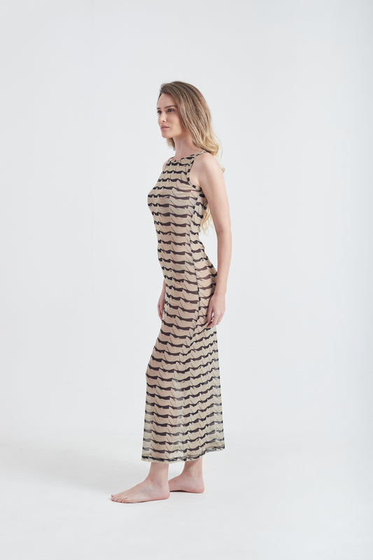Vestido Longo Regata Fauna & Flora Off White/Black