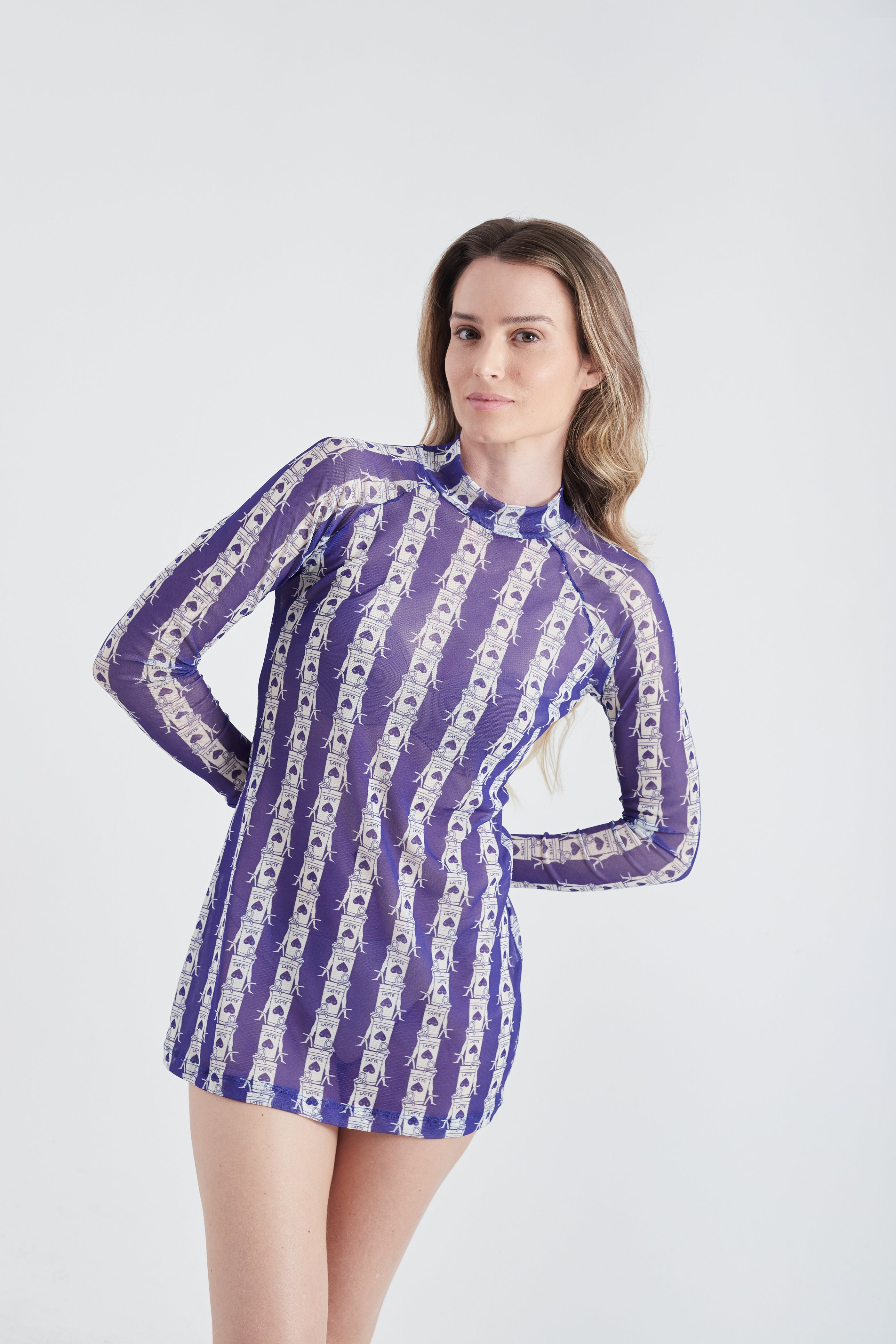 Vestido Curto Olha o Latte Azul/Branco