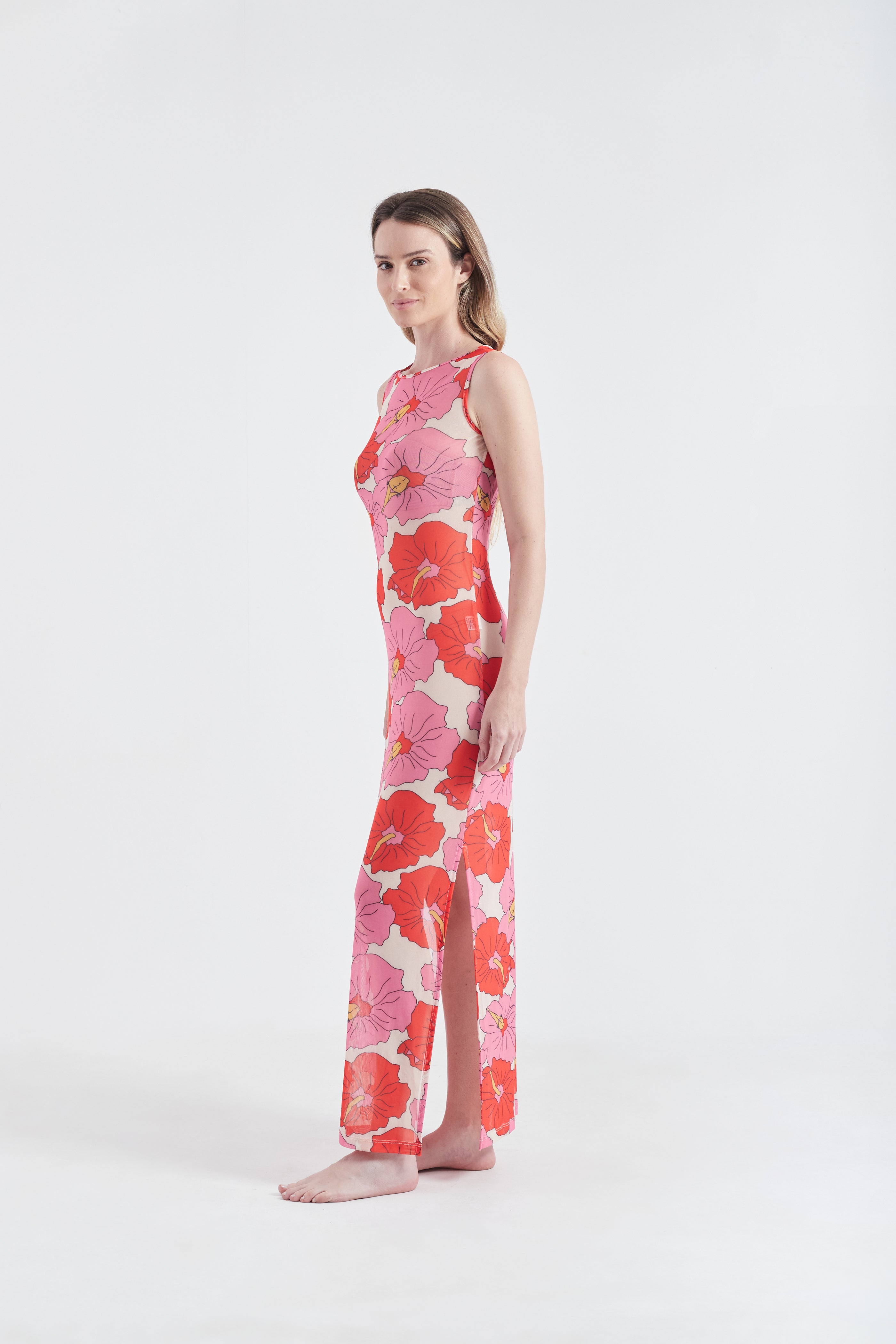 Vestido Longo Regata Poli Nation Vermelho/Rosa
