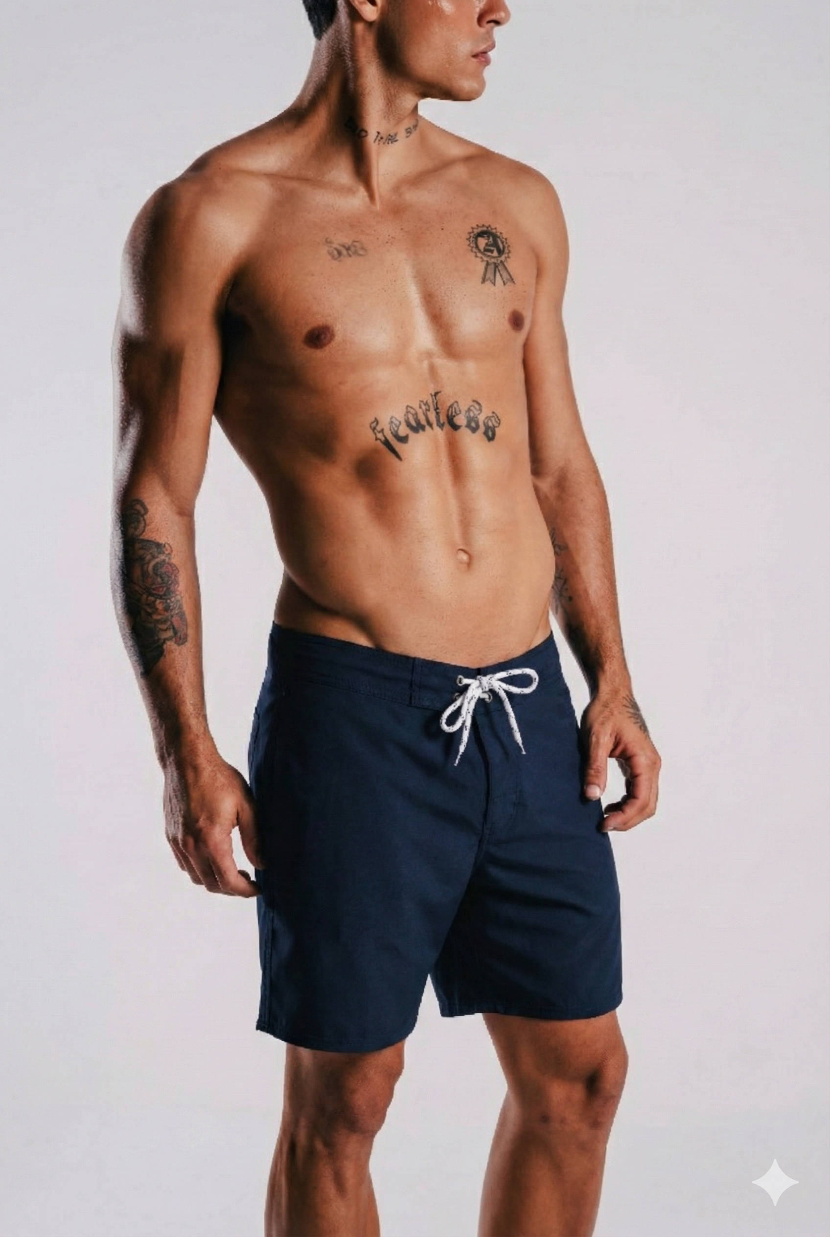 O Board Shorts Yin and Out Azul Escuro tem estilo e conforto. Feito com tecido tecnológico de poliéster e elastano, oferece elasticidade, secagem rápida e leveza. Perfeito para praia, piscina e academia, com rede interna de poliamida para suporte e respirabilidade. Liberdade total de movimento para uma vida ativa.