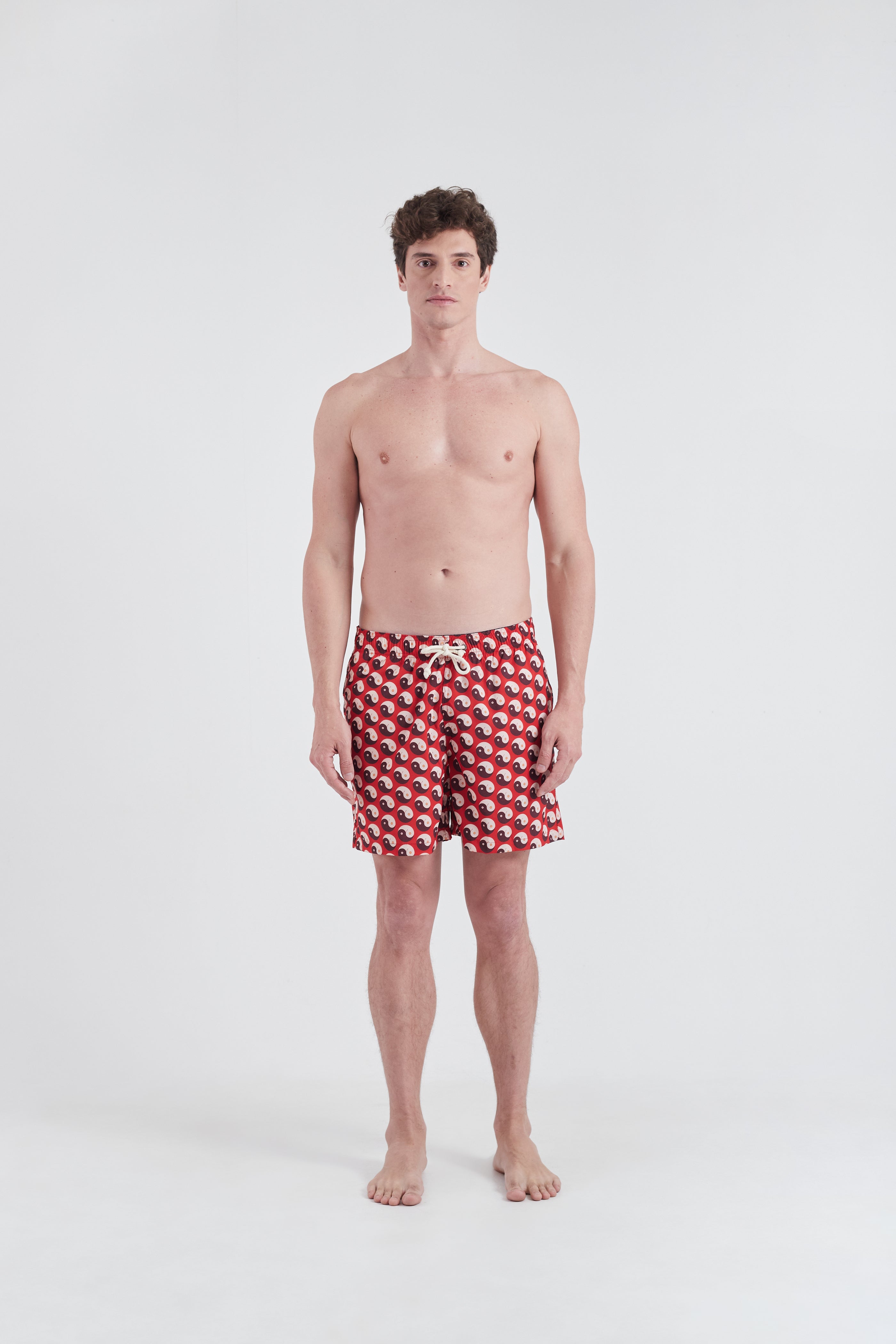Os Shorts Yin and Out Vermelho vem com personalidade com a estampa de símbolos yin-yang em tons de vermelho e bege. Feitos para quem não tem medo de ousar, esses shorts combinam material tecnológico leve, forro em poliamida e cós elástico ajustável, garantindo conforto e liberdade total de movimento. Seja na praia, na piscina ou na academia, eles são ideais para momentos que pedem descontração com uma pitada de atitude.