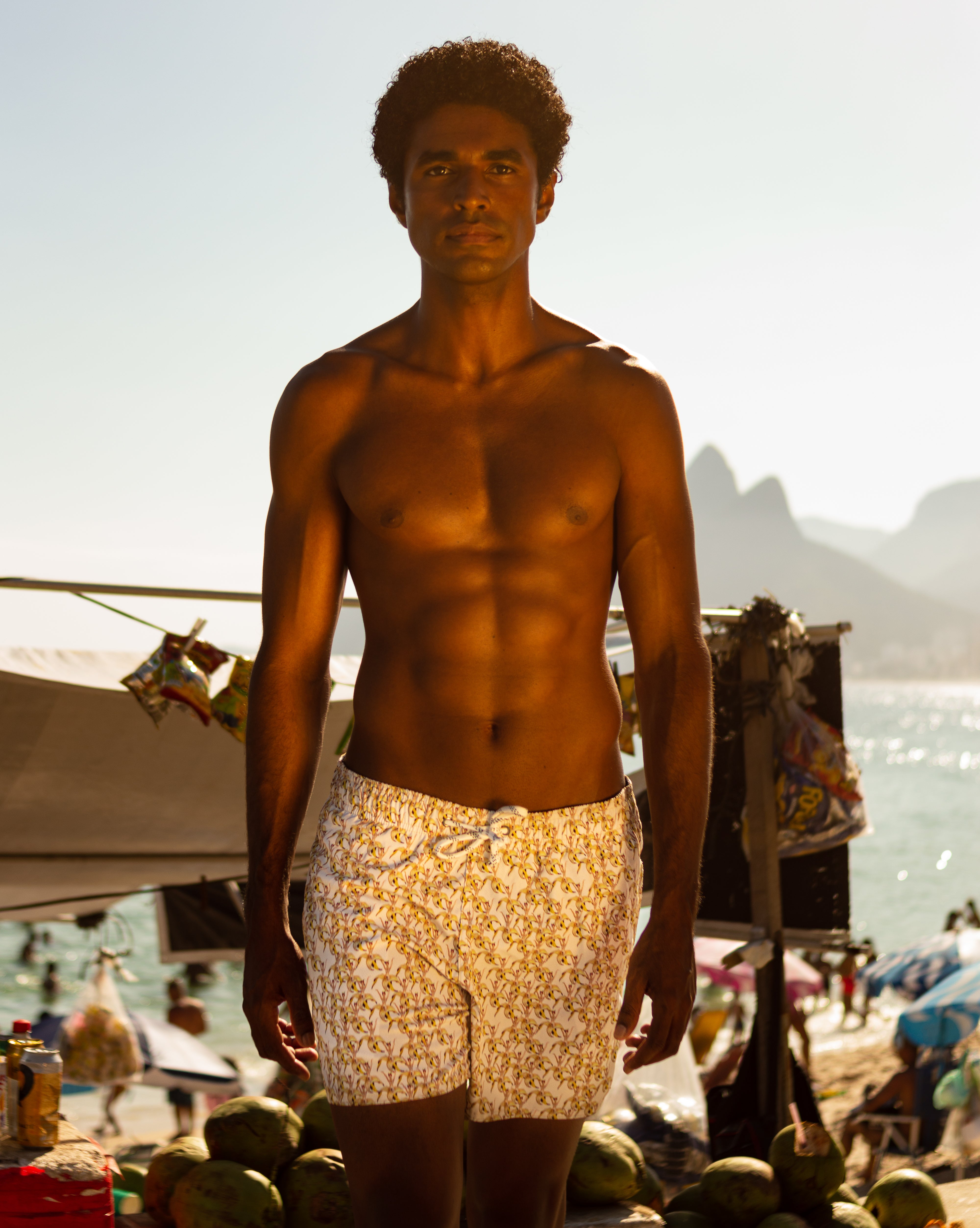 Shorts Banana Chiquita Off White com design moderno e funcional. Feito com material tecnológico que garante extremo conforto, possui elástico no cós e forro de rede em poliamida. Versátil, ideal para atividades na praia, piscina e academia.