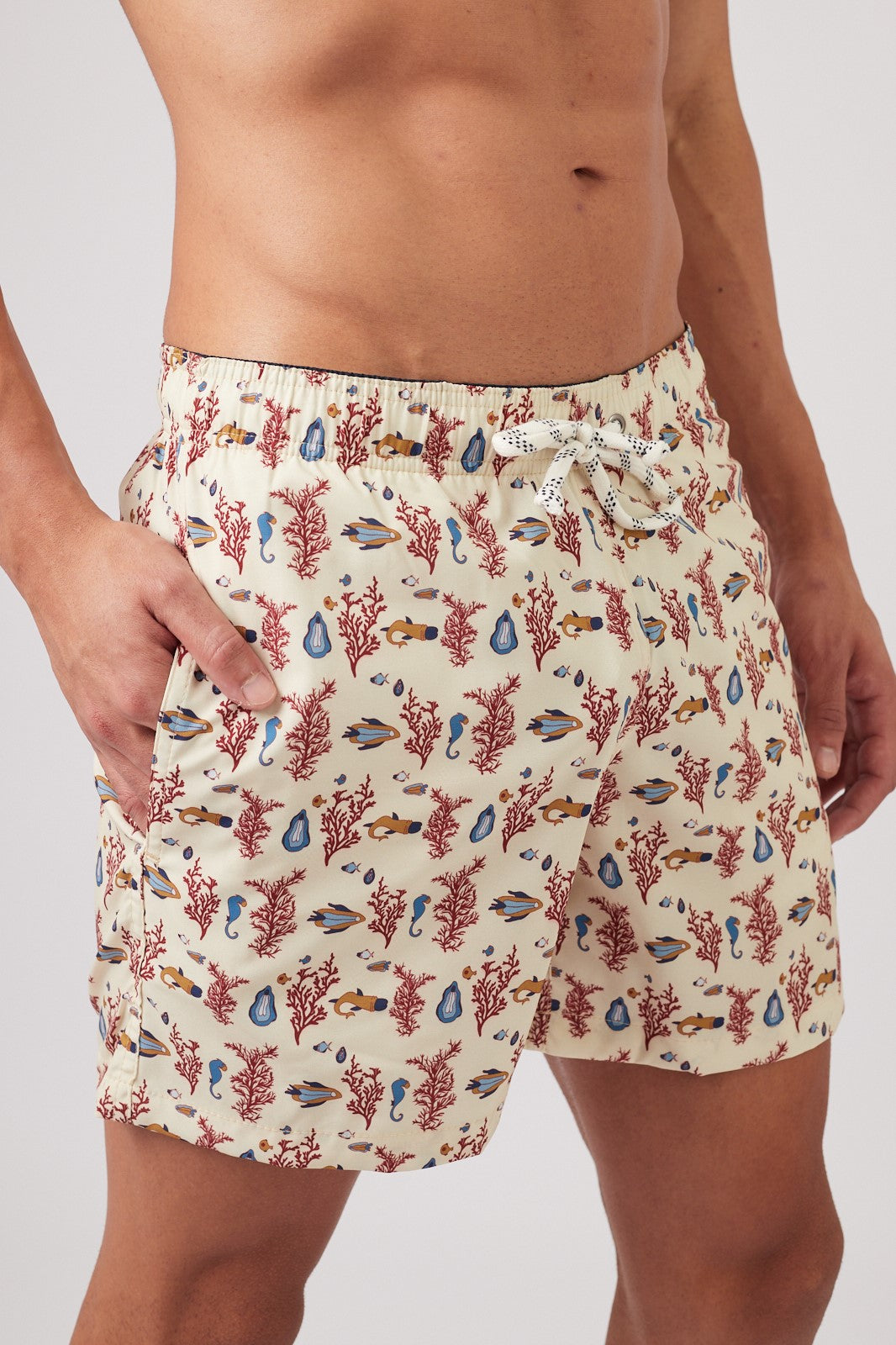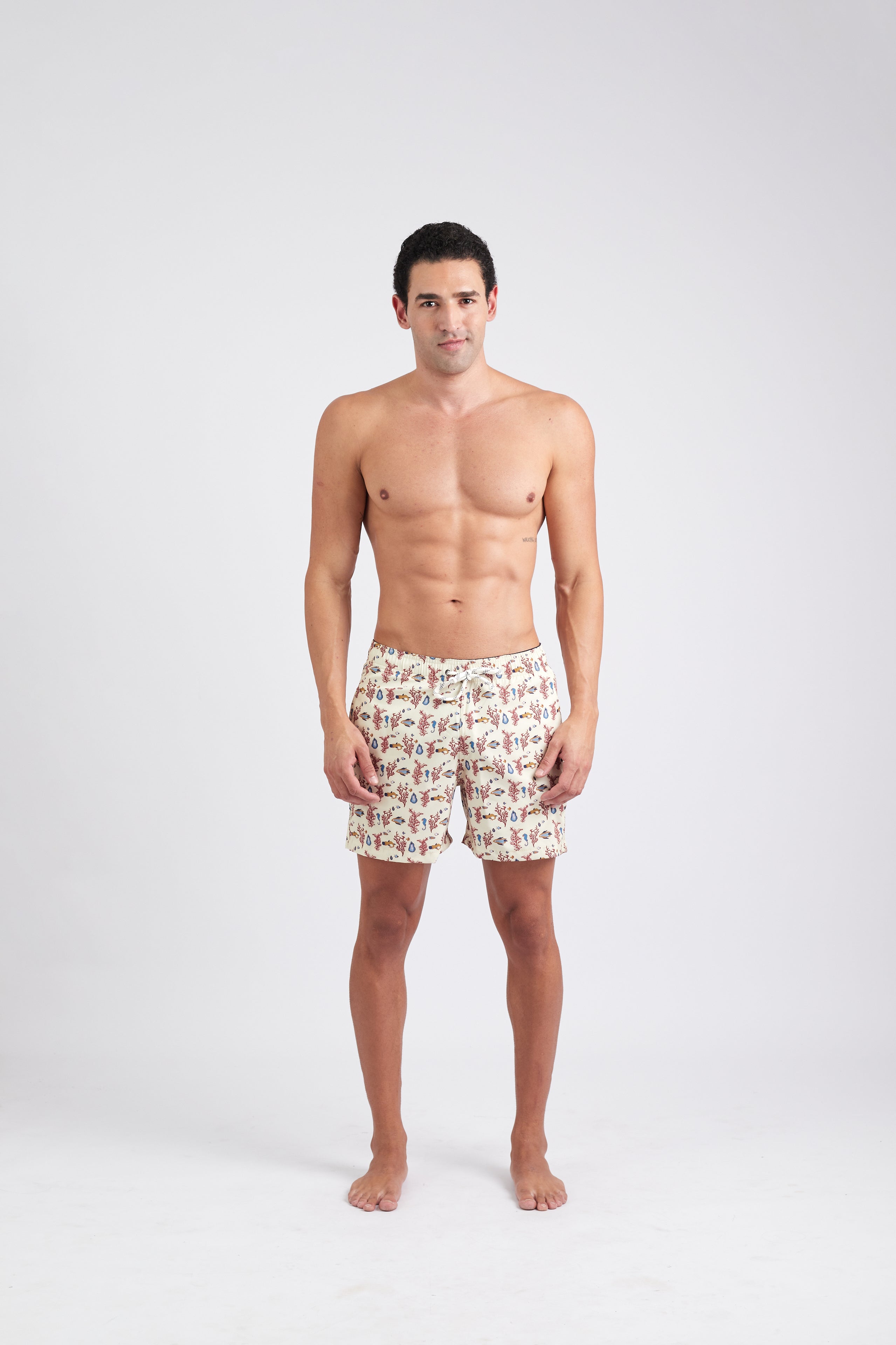 Shorts Sharkcocky um toque marinho e sensual inspirado nas riquezas da natureza marinha, este short combina funcionalidade com estilo suave em tons de off white e marrom. Feito com material tecnológico que oferece respirabilidade, traz elástico no cós e forro de rede em poliamida para conforto absoluto.