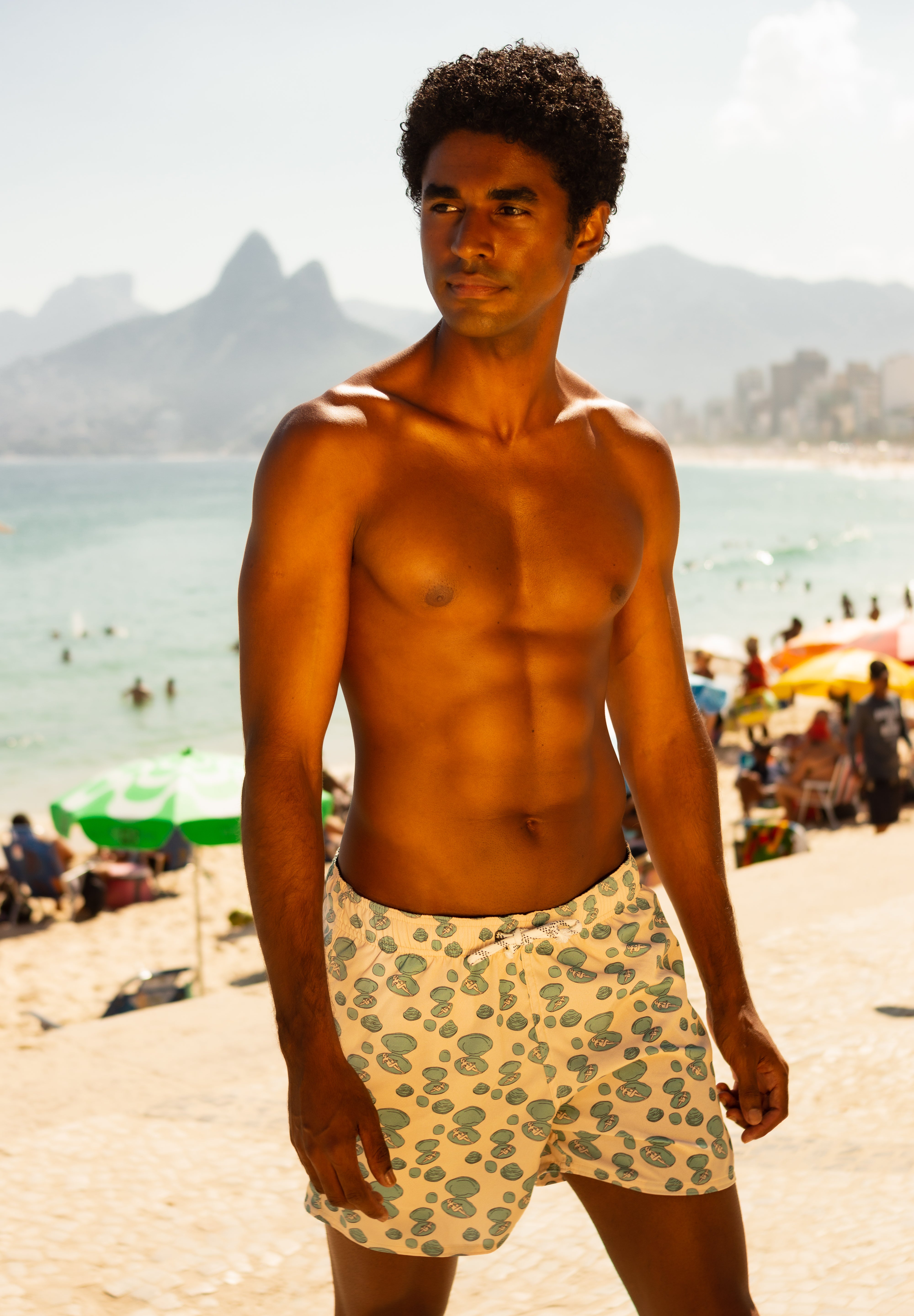Shorts Happy Oyster e cheio de personalidade sobre o universo praiano. O design mistura silhuetas, cenas descontraídas de ostras e conchas, criando um padrão divertido e contemporâneo. Com conforto máximo, Apresenta elástico no cós e forro de rede em poliamida. Ideal para praia, piscina e festas ao ar livre.