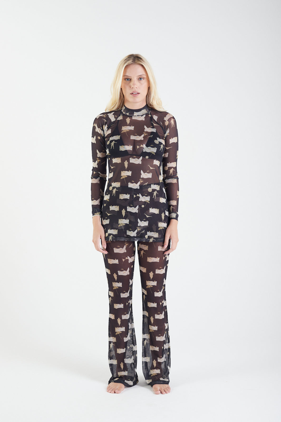 Vestido Curto Beach Please oferecendo um visual moderno e sofisticado. A leveza do tecido e sua transparência sugerem que pode ser usado como saída de praia ou sobreposição para looks mais ousados. Ideal para climas quentes e ocasiões casuais ou eventos à beira-mar.